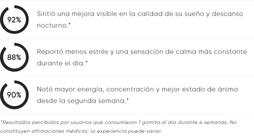 Después de 8 meses sin dormir bien por el estrés del trabajo, estas gomitas me salvaron. Ahora duermo 7 horas seguidas y despierto con ganas de todo. Mi esposo dice que volví a ser la de antes.